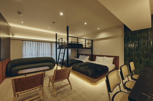 Illi Stays is a boutique hotel chain with many locations around Tokyo. Some of their locations are newly opened. The hotels are small, but the rooms are big! Liberal use of loft-style beds located on sleeping platforms and accessed by ladders allows for four or five people to sleep in the spaces easily.