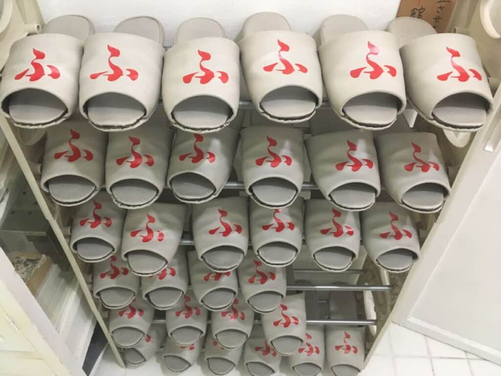 Oh, and if you go to a bathroom somewhere and see slippers outside the door, these are special bathroom slippers – you should remove your shoes (if you still have them on) or the slippers you’re currently wearing and swap to these to use the bathroom.